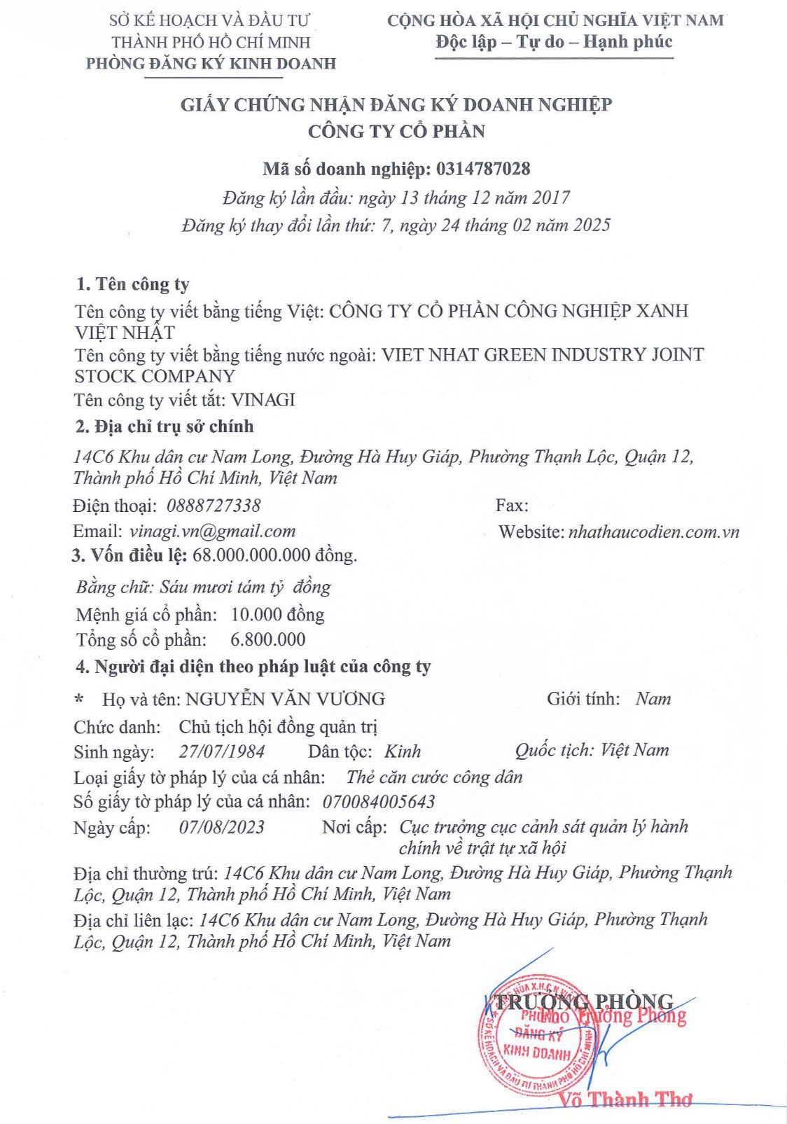 Vốn điều lệ: 68.000.000.000 đồng (sáu mươi tám tỷ đồng)